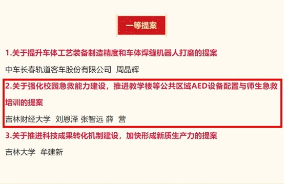 近日,全省优秀职工代表提案评选结果正式公布,我院刘恩泽、张智远、薛营三位老师联名提交的《关于强化校园急救能力建设,推进教学楼等公共区域AED设备配置与师生急救培训的提案》凭借突出的实用性、前瞻性与针对性,获评全省优秀职工代表一等提案。